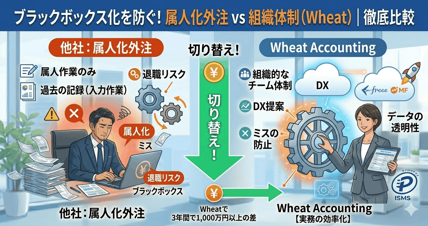 正確な財務判断には「正しい数字の土台」が不可欠です。弊社では経理代行サービスも展開しており、未整理の領収書や通帳の整理といった「足元の立て直し」から、CFOレベルの「未来の戦略」までワンストップで対応可能です。「整ってから呼ぶ」のではなく「整えるところから一緒にやる」のがWheatのスタイルです。